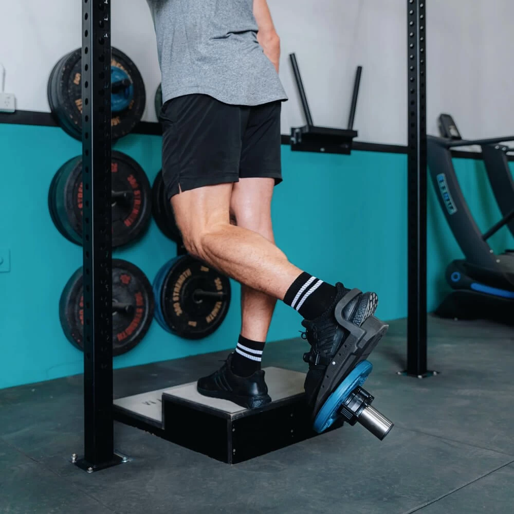 - Adjustable stainless steel loading bar features 3 positioning options to allow weight distribution to be spread across different areas of the foot, accommodating different foot sizes and different exercises