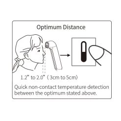 - Measures body (forehead) temperature from 34.0° to 42.2° without contact